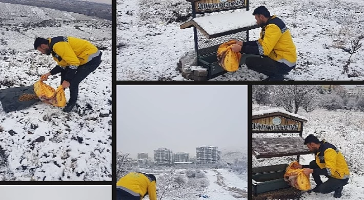 Özellikle soğuk havaların etkisini gösterdiği kış günlerinde sokaktaki sahipsiz kedi ve köpekler için kentin çeşitli noktalarında bulunan besleme odaklarına mama bırakan ekipler soğuk hava ve kar yağışından dolayı yiyecek bulmakta zorlanan kuşlar içinde parklardaki çeşitli noktalara buğday bırakıyor.