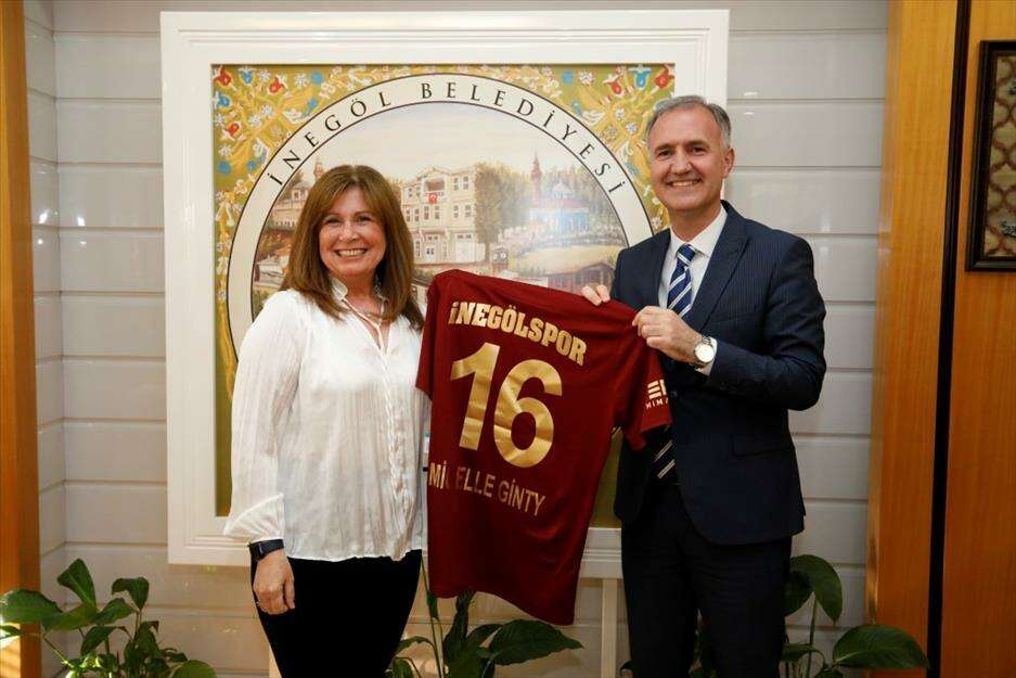 20 Mayıs Cuma günü ülkelerine geri dönecek olan Londralı ekibi, Perşembe günü Belediye Başkanı Alper Taban’ı makamında ziyaret etti. Ziyaret sırasında İnegöl ve Türkiye hakkında öğrencilerle ve öğretmenlerle sohbet eden Başkan Taban’a, öğrenciler özellikle 19 Mayıs törenleri ve Oylat’a hayran kaldıklarını söylediler. İnegöl’ün beklediklerinden daha yeşil olduğunu ve ülkelerinde bu kadar yeşilliği göremediklerini belirten öğrenciler, aynı zamanda aile içi bağların kuvvetinin de dikkatlerini çektiğini ifade etti. Ziyaret sonunda Başkan Alper Taban gruptaki öğretmenlere İnegölspor forması ile hediyeler takdim ederken, öğrencilere de İnegöl ve Türkiye’yi hatırlayacakları hediye takdimlerinde bulunuldu.