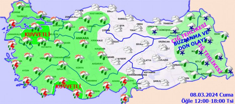 KUVVETLİ YAĞIŞ UYARISI: Yağışların; Çanakkale, Tekirdağ, İstanbul, Kocaeli, Balıkesir, Bursa, Yalova, Antalya, Adana, Osmaniye ve Hatay çevrelerinde yer yer kuvvetli olması beklendiğinden yaşanabilecek olumsuzluklara karşı dikkatli ve tedbirli olunmalıdır.