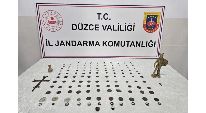 Sefer DEMİR / DÜZCE (İGFA) - Düzce İl Jandarma Komutanlığı ekiplerince yürütülen çalışmalar kapsamında, bir şahsın elindeki tarihi eser niteliğindeki objeleri satmak amacıyla müşteri aradığı bilgisine ulaşıldı.