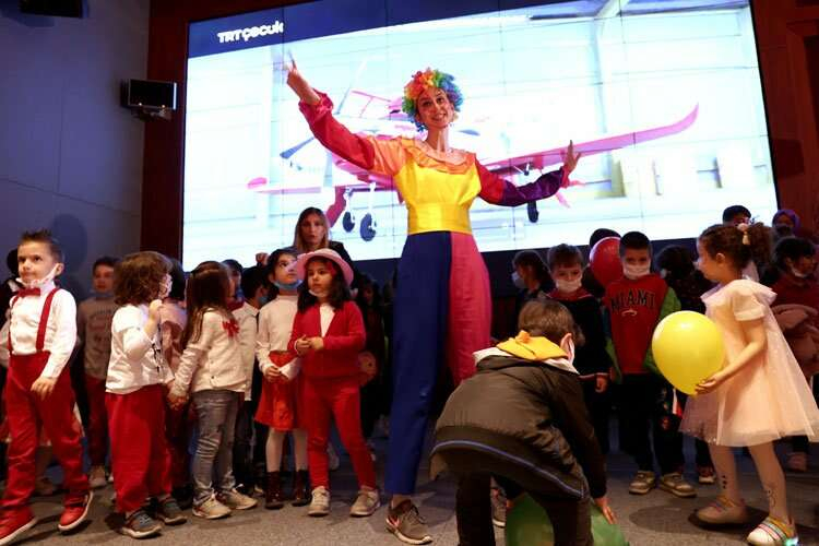 Özel ışık gösterilerinin yer aldığı programda, misafir çocuklar, palyaçoyla birlikte balon yapma, yüz boyama ve dans etkinlikleriyle renkli dakikalar geçirdi.