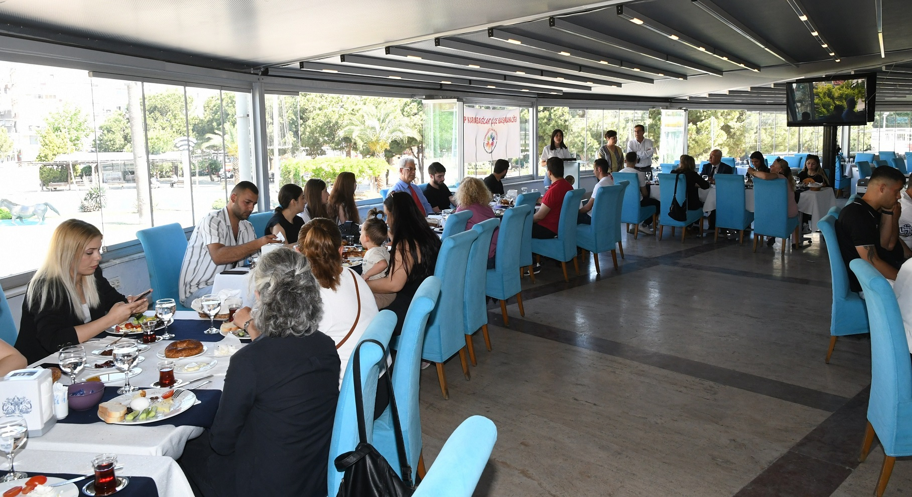 Karabağlar Belediye Başkanı Muhittin Selvitopu, 19 Mayıs Atatürk'ü Anma Gençlik ve Spor Bayramı etkinlikleri kapsamında gençlerle kahvaltıda buluştu.