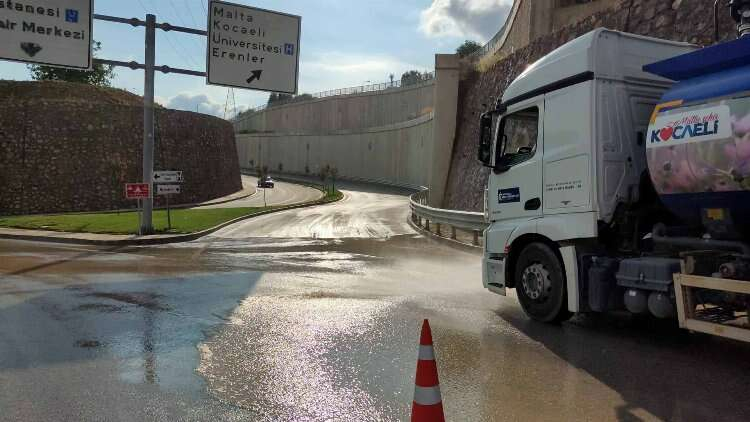 Şehir Hastanesi yolunu kapatan toprak kaymasına Kocaeli Büyükşehir Belediyesi Fen İşleri ekipleri anında müdahale etti.