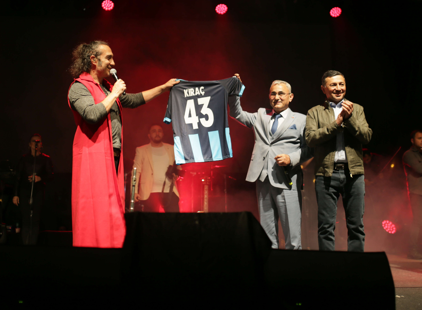 MHP Kütahya Milletvekili Ahmet Erbaş ve Belediye Başkanı Prof. Dr. Alim Işık, sahne alan Kıraç’a, günün anısına Kütahya Çinisi, Belediye Kütahyaspor forması ve atkısı hediye etti.