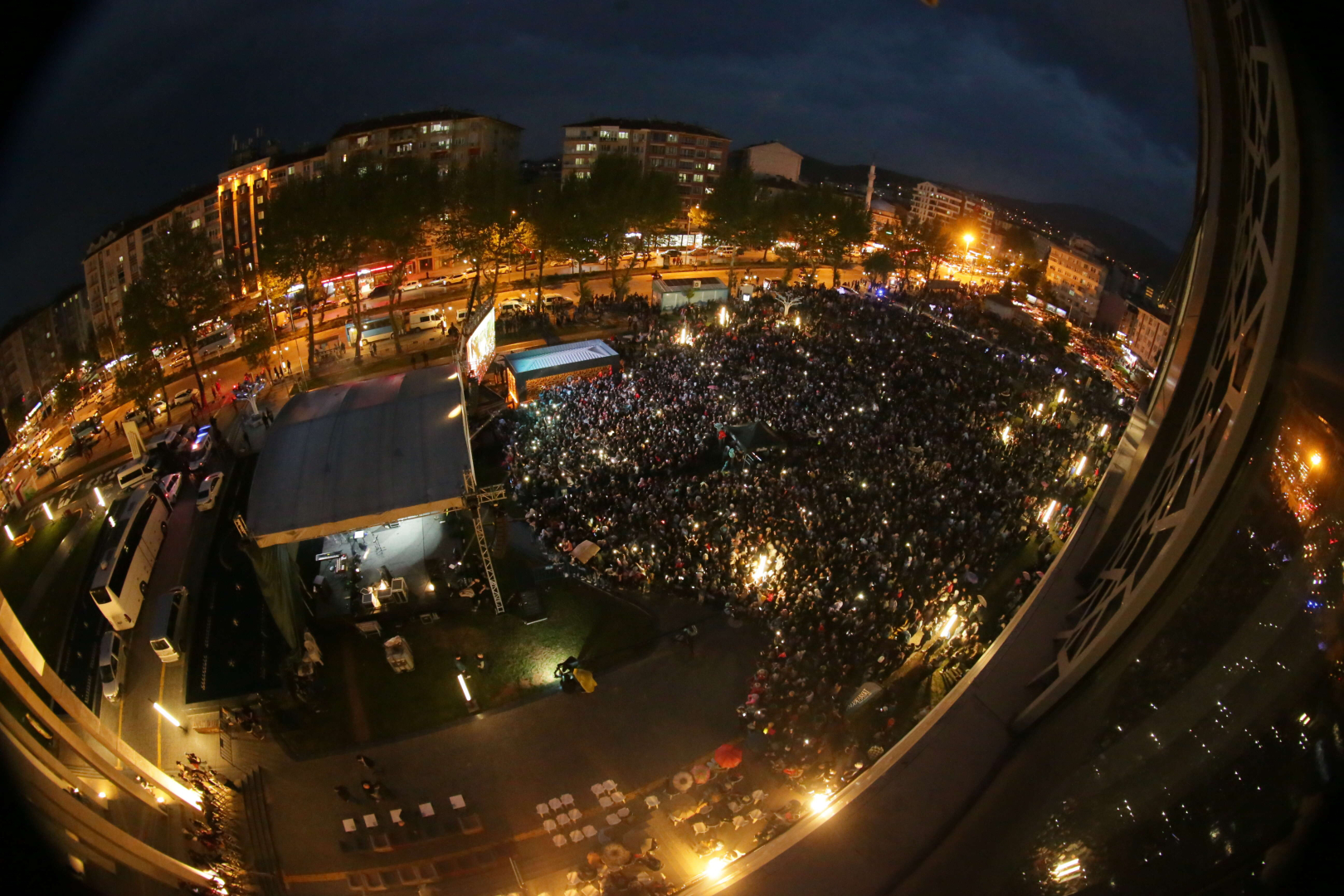 Belediye bahçesine kurulan sahnede sevilen şarkılarını seslendiren ünlü ses sanatçısı Kıraç, Kütahyalılara yoğun ilgi için teşekkür etti.