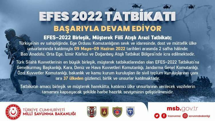 EFES-2022 Tatbikatı’nın yapıldığı sahada basın bilgilendirme toplantısı gerçekleştirildi. 1 Ocak’tan itibaren Irak’ın kuzeyinde 38’i büyük, 142’si orta çaplı olmak üzere 180 operasyon icra edilerek 425 terörist, 24 Temmuz 2015’ten bugüne kadar Irak ve Suriye’nin kuzeyi dâhil 34 bin 950 terörist etkisiz hâle getirildi.