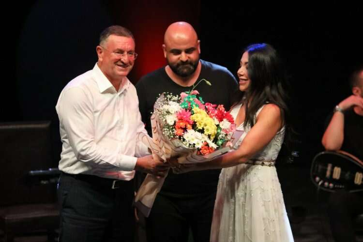 Hatay Büyükşehir Belediye Başkanı Doç. Dr. Lütfü Savaş, Türkiye’nin büyük sanatçılarını ağıladıkları EXPO amfitiyatroda Lübnanlı misafirlerini ağırlamaktan çok mutlu olduklarını ifade ederek sanatçıya çiçek hediye etti.